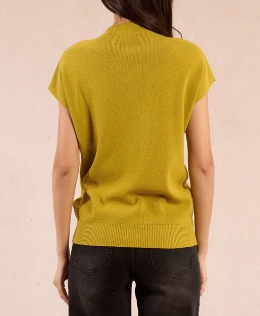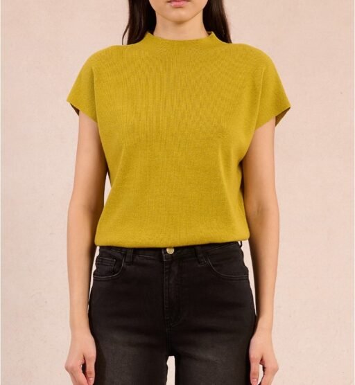 Un básico con personalidad: jersey de manga corta en punto fino con cuello ligeramente alto. Su color fucsia intenso aporta energía y modernidad, mientras que su corte recto lo convierte en una pieza versátil y cómoda. Ideal para llevar en entretiempo o como prenda de capas bajo chaquetas y blazers.