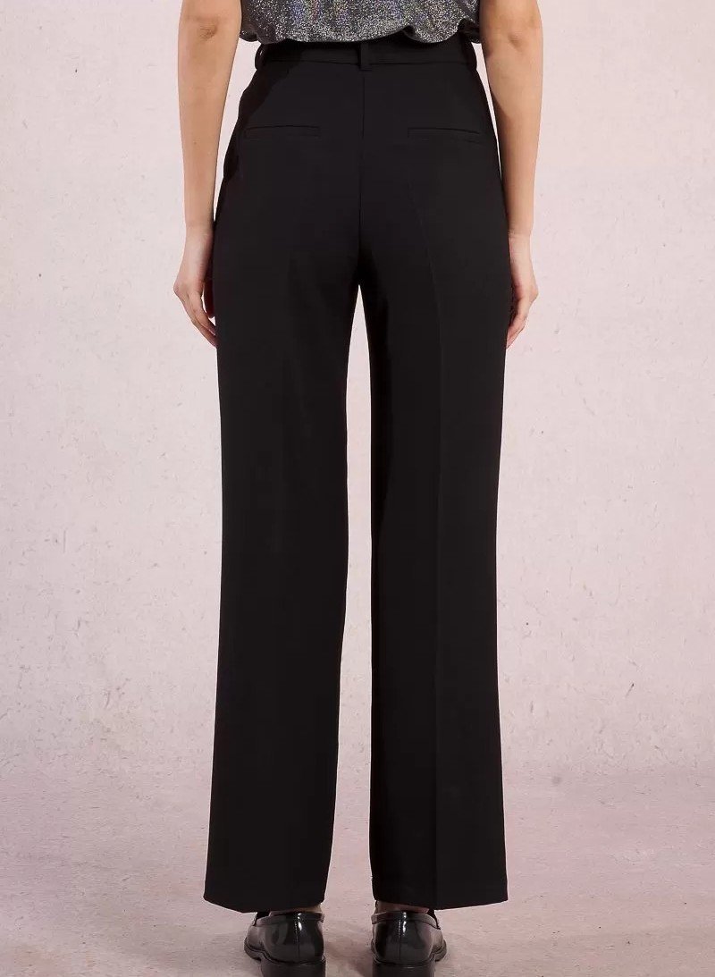 Pantalón negro de tiro alto con corte recto y largo tobillero. Su diseño atemporal y elegante lo convierte en una prenda imprescindible del armario, fácil de combinar y siempre favorecedora. Confeccionado en tejido ligero con caída impecable para mayor comodidad y estilo.