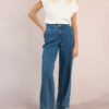Este pantalón vaquero de tiro alto y perneras amplias acampanadas aporta comodidad y estilo a partes iguales. Versátil y favorecedor, se convierte en la pieza perfecta para looks casuales o más arreglados, dependiendo de los complementos que lo acompañen.